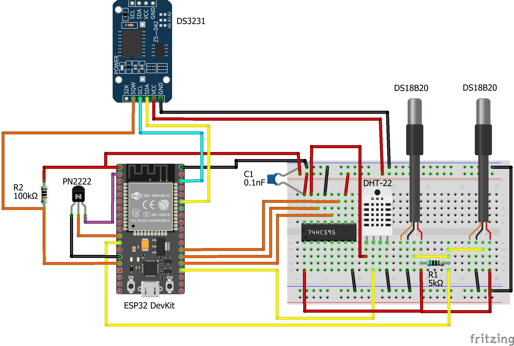 Figure 3 Schematic of the connections between ESP32 and the modules and parts.