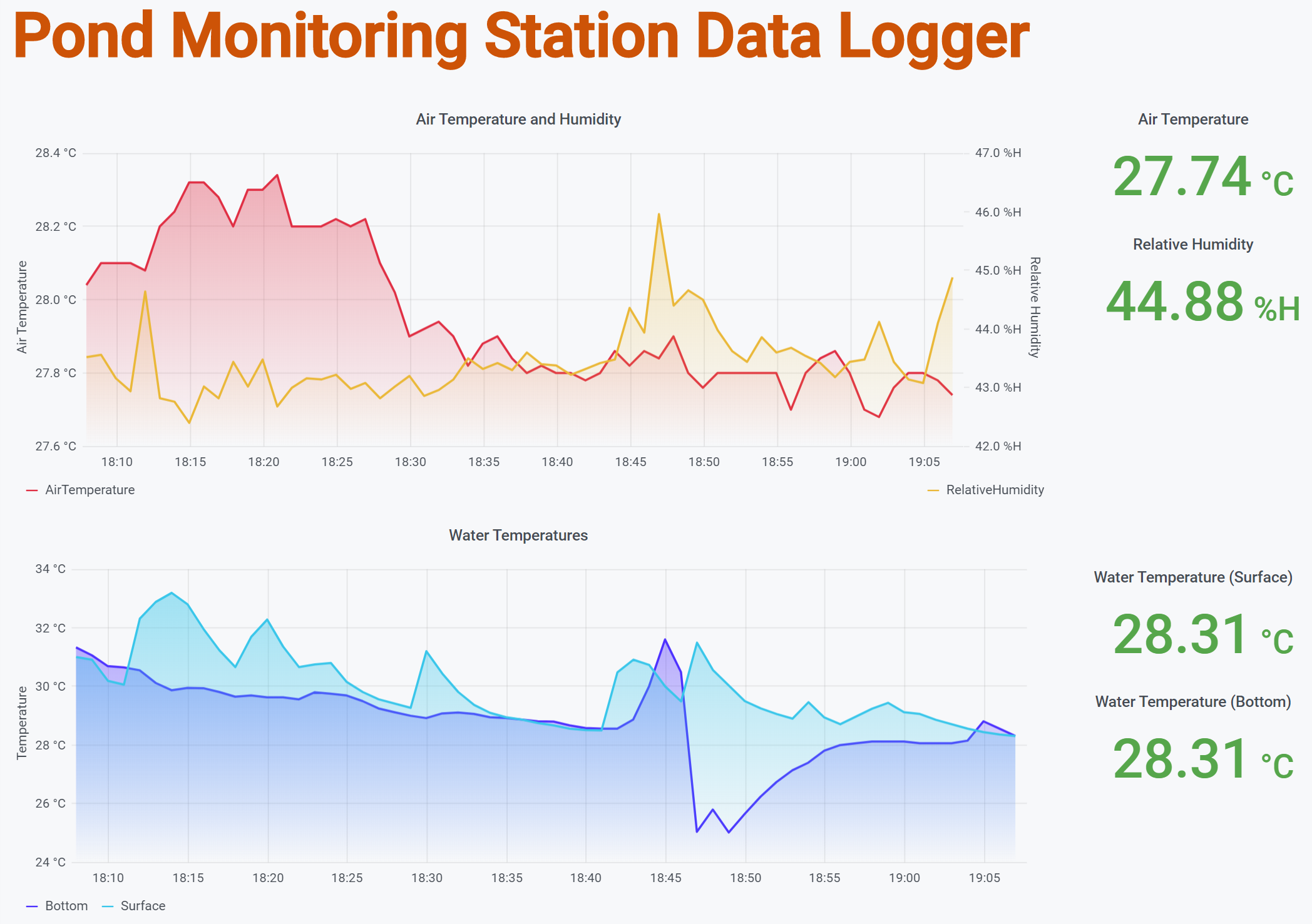 Figure 4 Measurement results of the DHT-22 and DS18B20 sensors visualized in Grafana.